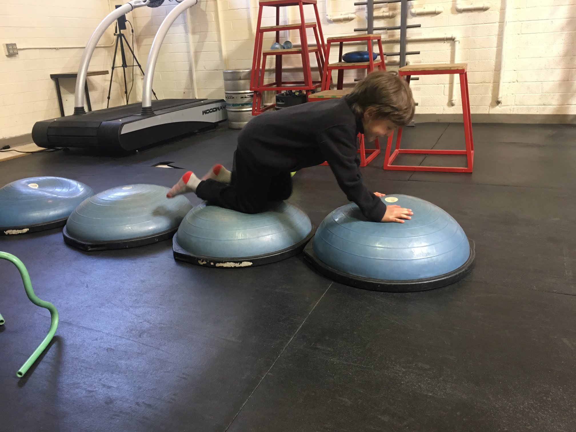We offer specific programs to develop better balance through progressive challenges. Proper balance and coordination both rely on having good body awareness. Body awareness is built through the foundation of the brain which starts with our neurodevelopmental movements, and progresses without balance, coordination, and strength programs.